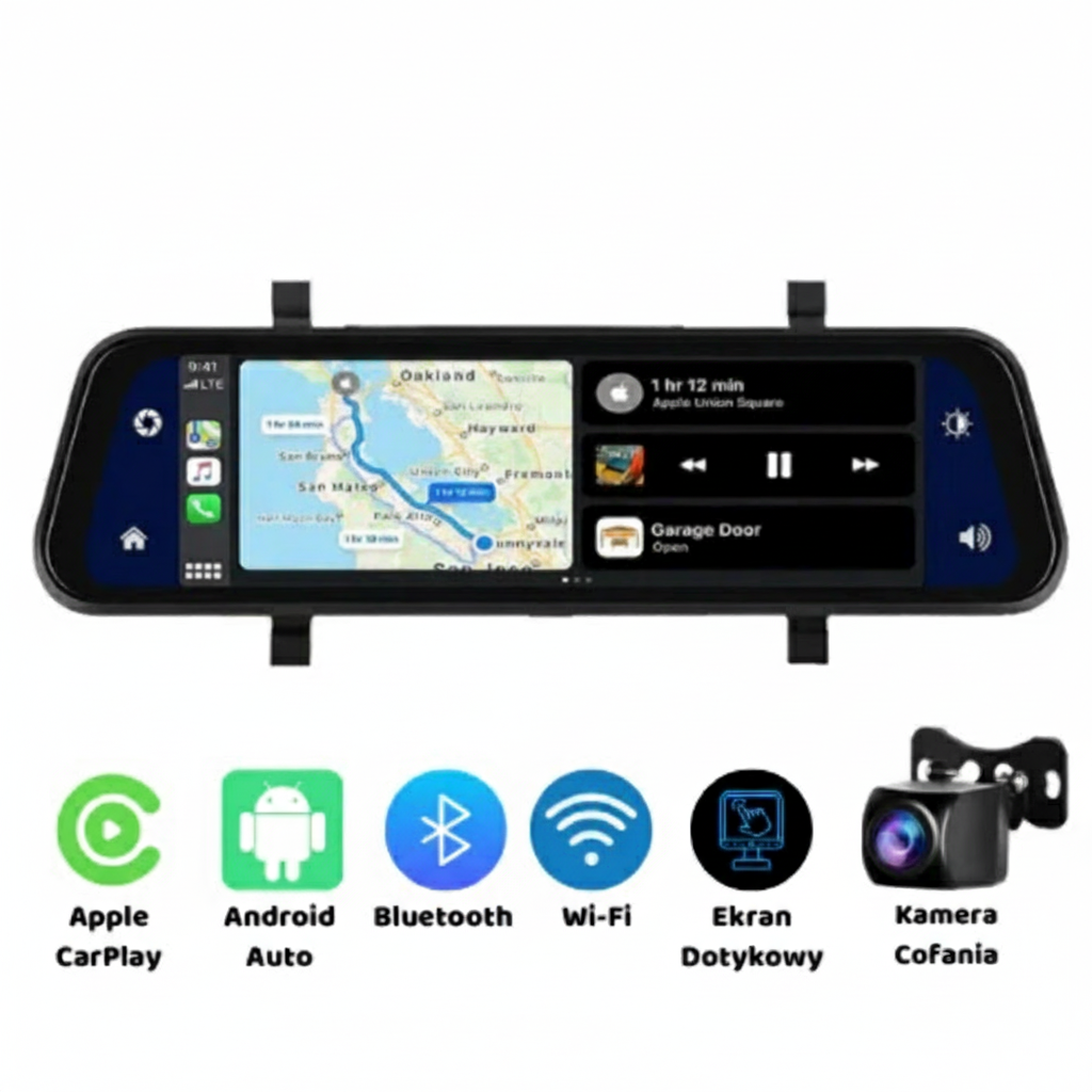 Bezproblemowa integracja z Android Auto i Apple CarPlay pozwala na pełną kontrolę nad nawigacją, muzyką i połączeniami telefonicznymi bez odrywania rąk od kierownicy. Wyświetlaj mapy, odbieraj połączenia głosowe i korzystaj z ulubionych aplikacji bezpośrednio na 10-calowym ekranie dotykowym kamery. Bezpieczeństwo i wygoda w jednym urządzeniu