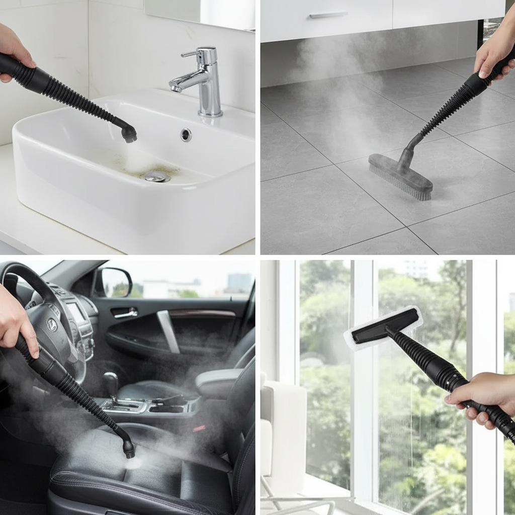 Gorąca para penetruje głęboko w pory i szczeliny, rozpuszczając brud, który tradycyjnymi metodami wymagałby godzin ciężkiej pracy. Efekt? Lśniąco czyste powierzchnie bez smug, bez zapachu chemii i bez wysiłku. To nie magia - to po prostu siła pary pod ciśnieniem.